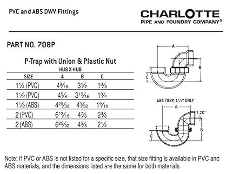 Charlotte Pipe 1 1 2 P Trap Pipe Fitting With Threaded Union And Polynut Schedule 40 Abs Dwv Drain Waste And Vent Durable And Easy To Install For Home Or Industrial Use Single Unit