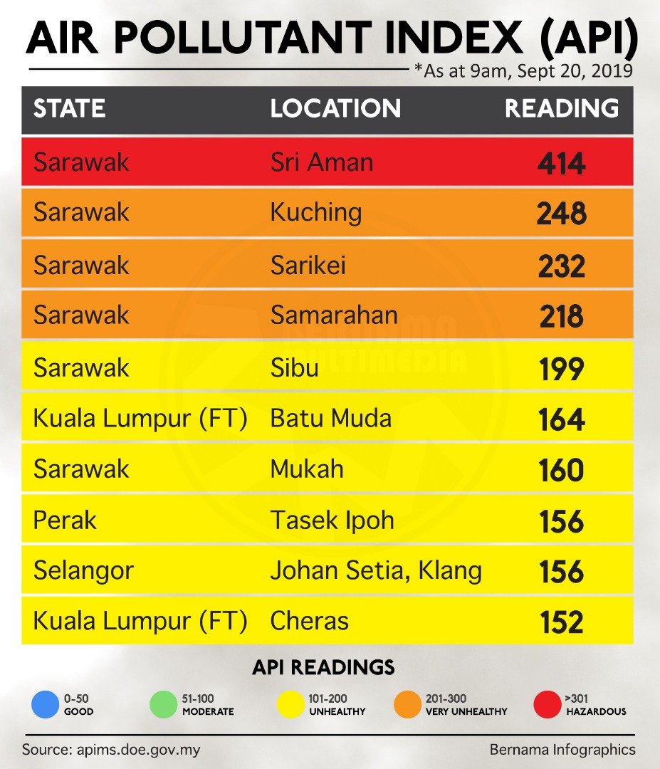 Bernama On Twitter Bernamahaze 10 Locations With High Api Readings As At 9am Sept 20 2019 More Updates Https T Co Go9m4wbgu2 Https T Co Umhljyvrdb