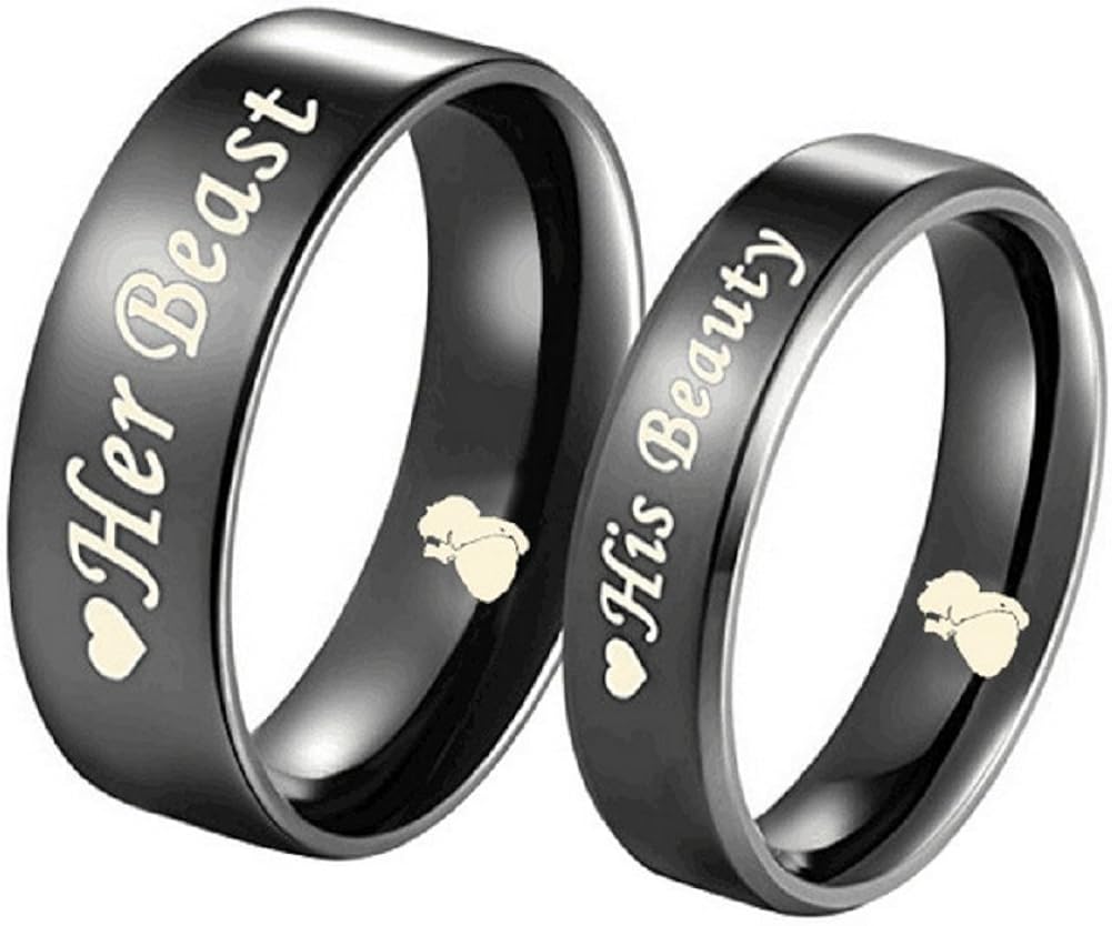 His Beauty Her Beast Engraved Ring Stainless Steel Couple Lovers Anniversary Engagement Wedding Band Promise Rings Amazon Ca Jewelry