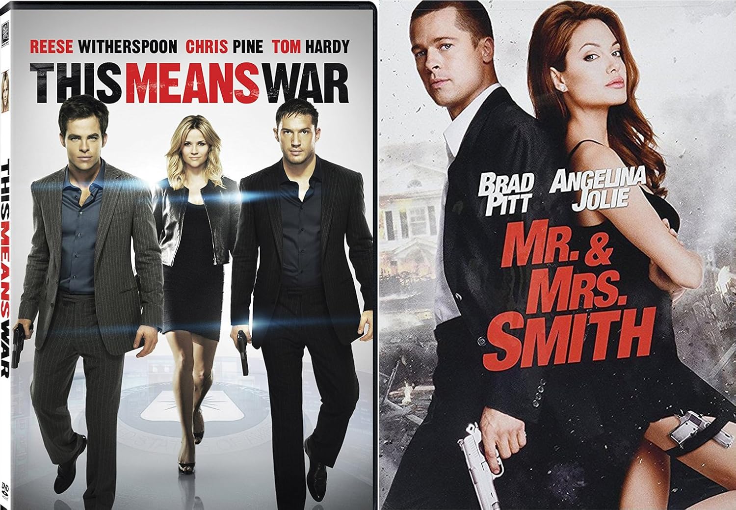 Amazon Com This Means War Mr Mrs Smith Dvd 2 Pack Action Movie Set Star Double Team Tom Hardy Reese Witherspoon Brad Pitt Angelina Jolie Doug Liman Movies Tv